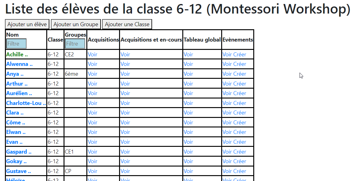 Cet outil permet de gérer la progression des élèves dans une classe Montessori.